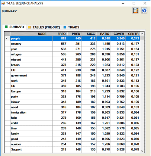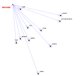 relationships between the 'nodes' (i.e. the key-terms) of the